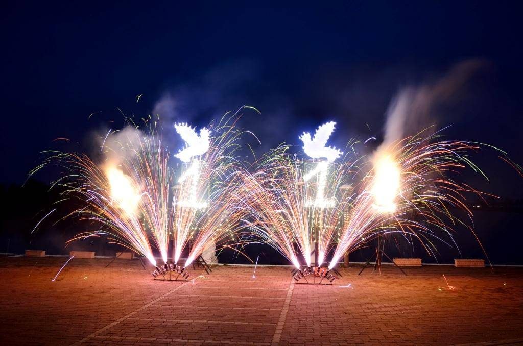 Сегодня элементы пиро- шоу могут быть самыми различными. Если говорить о наземных фейерверках, то наиболее популярными являются огненные фонтаны, серебряные и золотые водопады, горящие фигуры. Мы исполняем любые идеи заказчика и создаем фигуры любой формы и сложности. Это прекрасный способ ярко обозначить тематику праздника, выделить название компании или имена виновников торжества. Такие элементы станут не только прекрасным дополнением к основному фейерверку, но и исполнят роль декораций для программ с участием артистов оригинального жанра. Также мы готовы реализовать любые Ваши идеи: огненные сердца, голуби, имена, цифры и названия - сделают любой праздник заметным и необычным.
